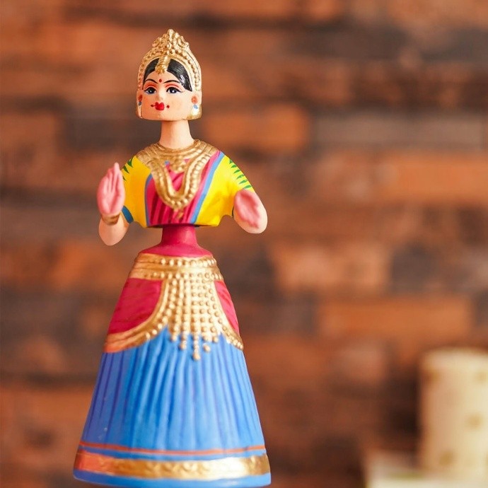 The doll’s eyes, facial expressions, costumes, jewellery, and features are all hand-painted, drawing inspiration from local attire, folklore, classical dance forms, and temple iconography. This results in each doll being a unique piece, not just a replicated figure. Local pigments and traditional paints were once used, though contemporary artisans may combine these with modern, non-toxic paints to meet market preferences.